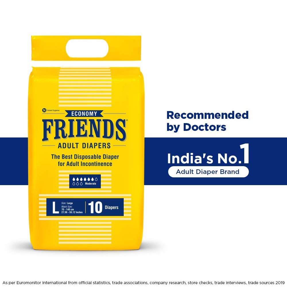 Friends Economy Adult Diapers Tape Style - 30 Count (Large) with odour lock and Anti-Bacterial Absor